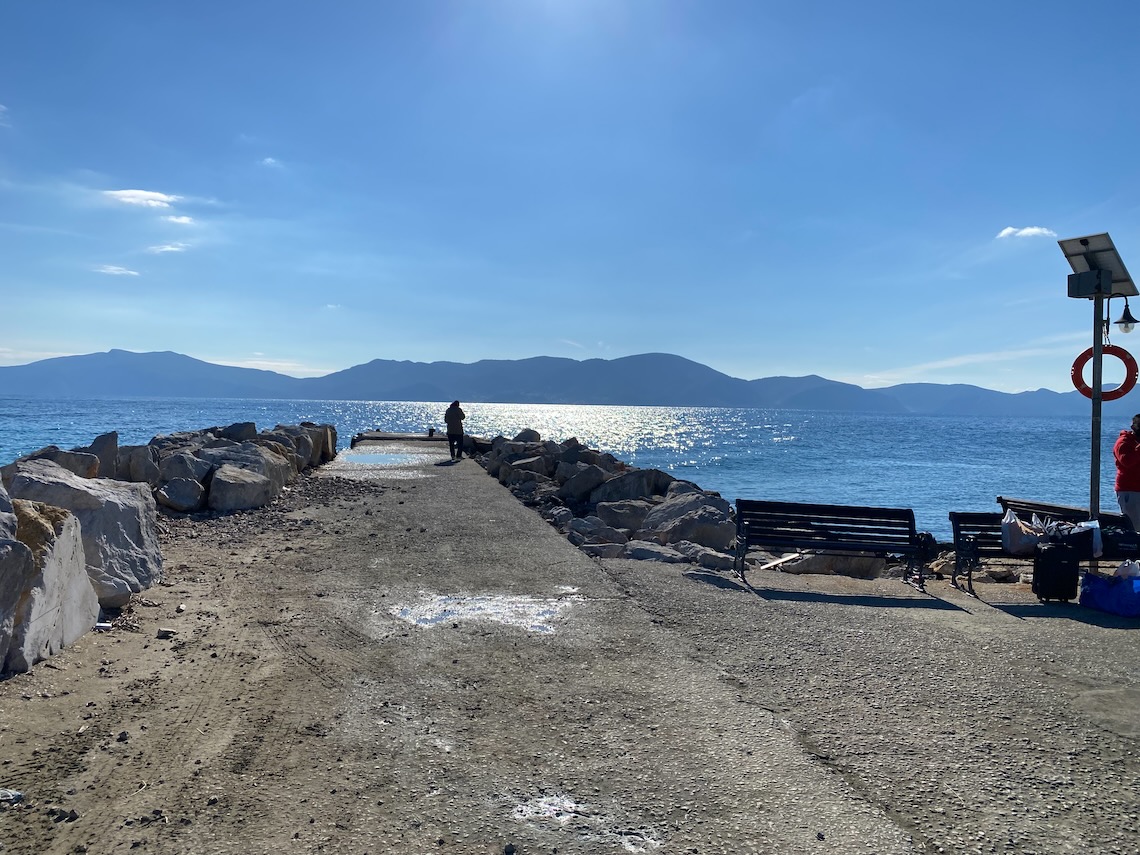 A two and a half hour drive took us to this dock - Hydra on the horizon.